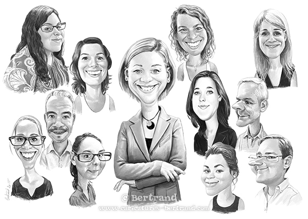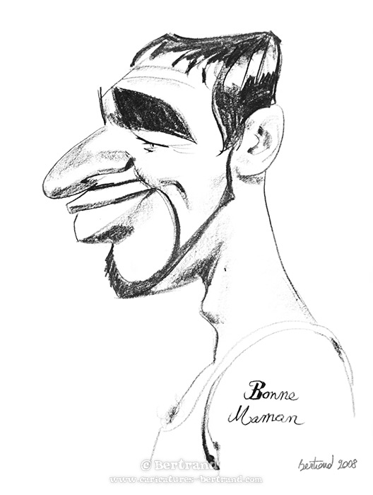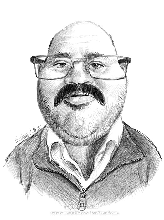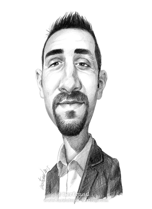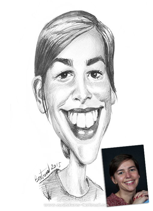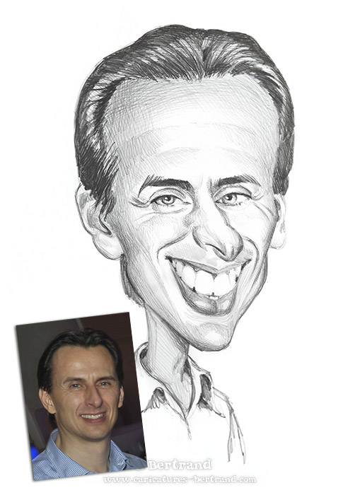 Nombre de gens voient la caricatures comme une amplification des « défauts du modèle ». C'est souvent le cas ! Cependant, l'approche de Bertrand est très différente : Il s'agit plutôt d'amplifier le caractère du modèle, non de le blesser. Lorsque Bertrand dessine, il aime que le premier à s'amuser soit le modèle lui-même... L'expérience et la formation de portraitiste classique aidant, Bertrand sait au premier coup d'oeil ce qu'attend le modèle, et adapte son trait pour le satisfaire.